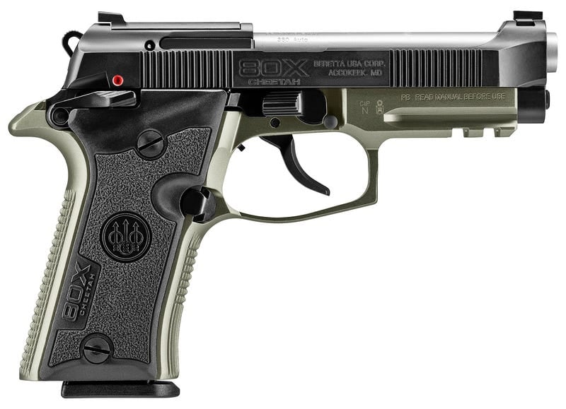 This model stands out with its DA/SA action, ensuring smooth and reliable operation. The adjustable sight style, including an interchangeable front sight with a white dot, enhances target acquisition and accuracy. The optic-ready, serrated steel slide, finished in black, adds to the pistol’s robustness and appeal. The 80X Cheetah’s black Vertec grips and skeletonized hammer enhance its ergonomic design, making it comfortable to handle and shoot.