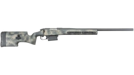 The Ridgeback Rifle uses the Bergara Premier Action which is designed as a two-lug system that features a separate floating bolt head to ensure contact with the lug abutments in the action. It also features a cone-shaped bolt nose for smooth feeding of the cartridge, and a spring-loaded sliding plate extractor located in the front of the lower locking lug. The one-piece bolt body is stainless steel with a pad at the rear to accept the threaded-in bolt handle. The bolt head, the non-rotating gas shield, the bolt handle, and bolt shroud are fully Nitrided for extreme durability, as well as its self-lubricating properties. The two-position safety is part of the trigger assembly, which in the Approach rifle is a TriggerTech Frictionless Release Technology. One great feature of this combination allows the bolt handle not to lock in the closed position, which in turn allows the rifle to be unloaded while in the safe position. This model has a 26″ threaded barrel, TriggerTech frictionless release, adjustable check rest, and a stock that fully supports the M-LOK system. It has a detachable magazine and fits Remington 700 bases with 8 x 40 screws.
