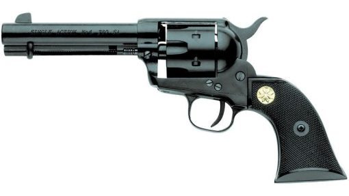 <p>CHIAPPA SAA 1873 RIMFIRE REVOLVER •Single Action Army (SAA) 1873 American West style revolver •Black frame finish •Fixed front sight •Black plastic grips •Chambered in easy-to-shoot readily accessible rim?re cartridge Caliber: 17 HMR Action: Single” Capacity: 6 Feeding: Manual Trigger System: Single Grips: Black Front Sight: Fixed Safety: Transfer Bar Weight: 2LBS Length: 10.25″ Finish: Black Material: Alloy Extraction: Manual</p>