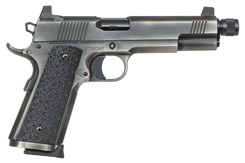 The Dan Wesson Wraith is Government-size 1911. It comes with a threaded barrel and high set night sights to make this pistol suppressor ready. Get one today at the best price online from GrabAGun!