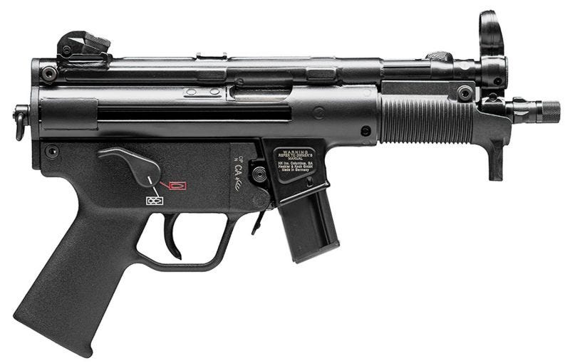 The H&K SP5K-PDW is a fast-handling, highly accurate, and reliable pistol built for close-quarters action. It comes chambered in 9mm with a 5.83 inch barrel. Features include roller-delayed blowback system, easy to use controls, and a 10 round magazine. Pick one up at the best price online from GrabAGun!